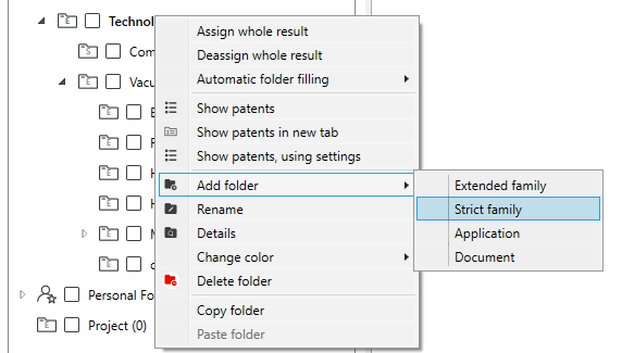 This option creates a hierarchical, technical folder structure for classifying patents based on the text entered.