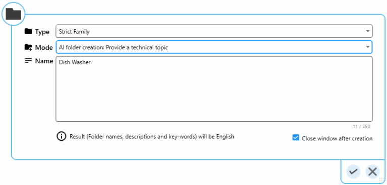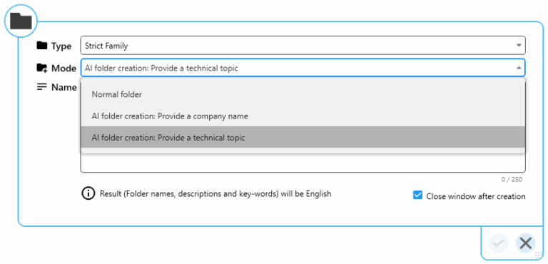 A new folder creation feature allows you to automatically generate folder structures based on a technical description or a company.