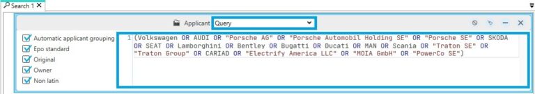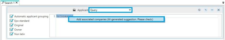 This feature allows you to identify not only the specified applicants, but also their subsidiaries and affiliated companies in the query applicant search.